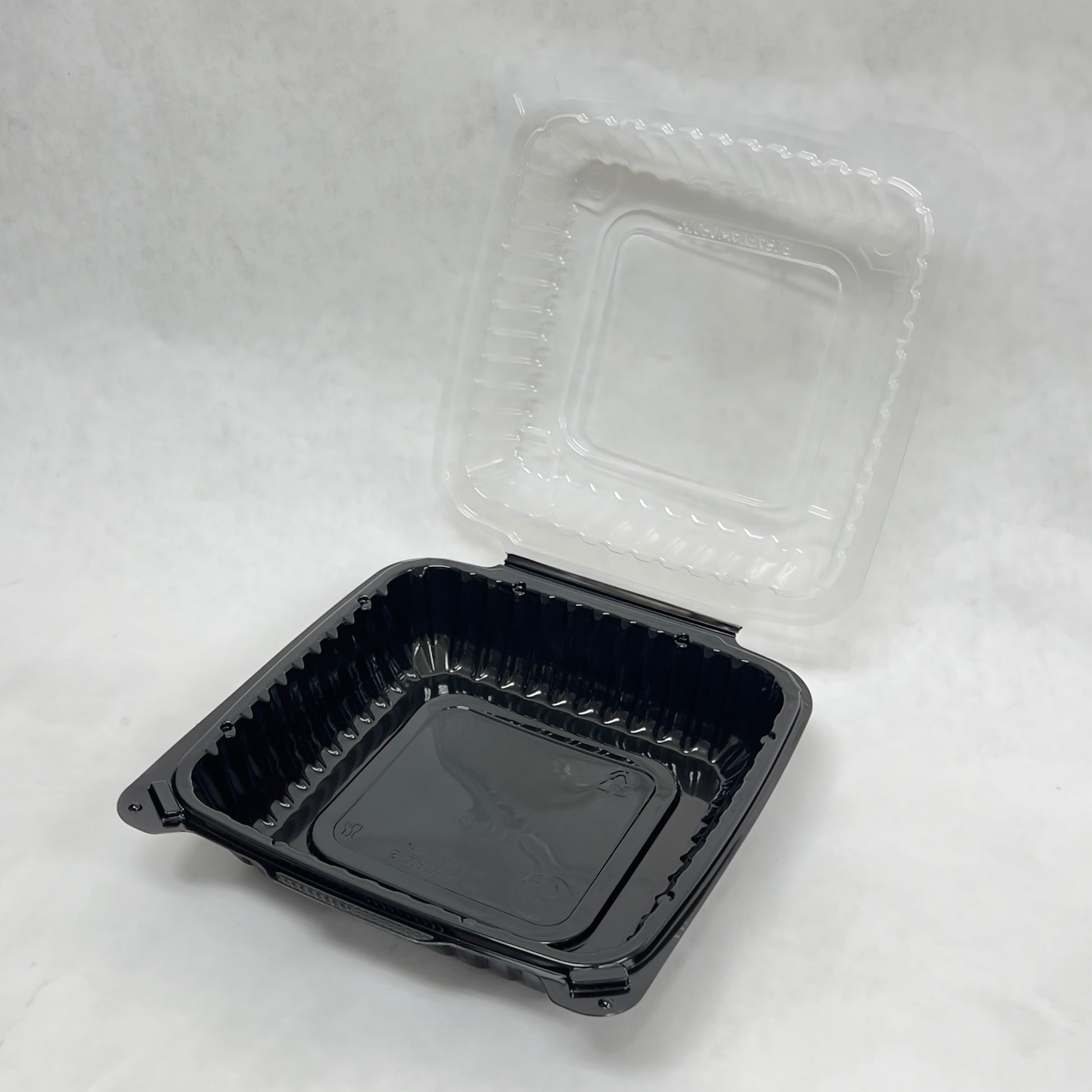 - Product Description: Black Base Clear Lid PP Hinged Clamshell Container - 1 Compartment